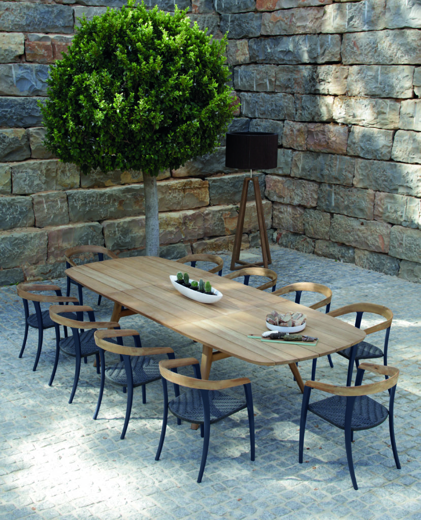 A thin aluminium sheet, shaped into a minimalistic seat to be hung into a warm organically shaped teak frame, doesn’t sound like a perfect marriage. But Zidiz proves that it does look like one! When the stackable chairs are placed around the matching table, framed with either a smoothly curved Corian® or glass top, you will find the combination sublime.